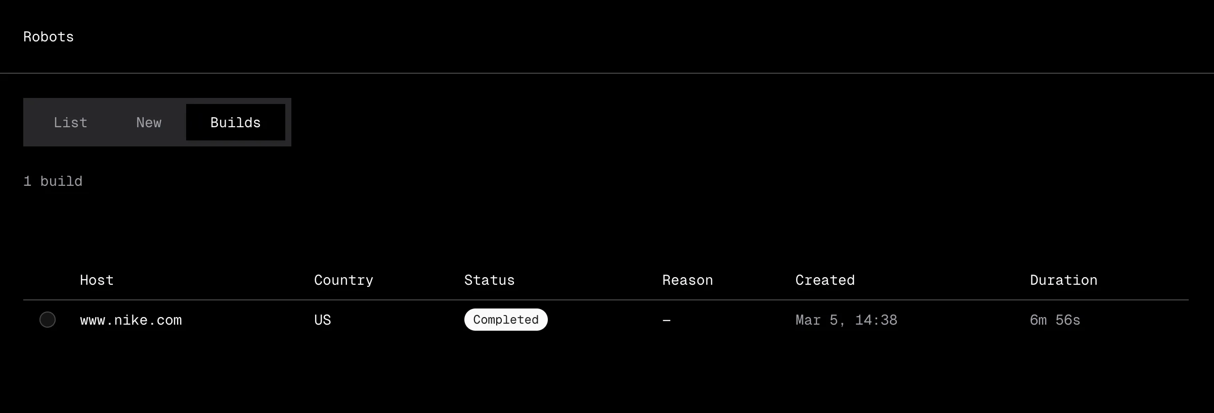| Host | The domain the robot crawls, shown with a favicon |